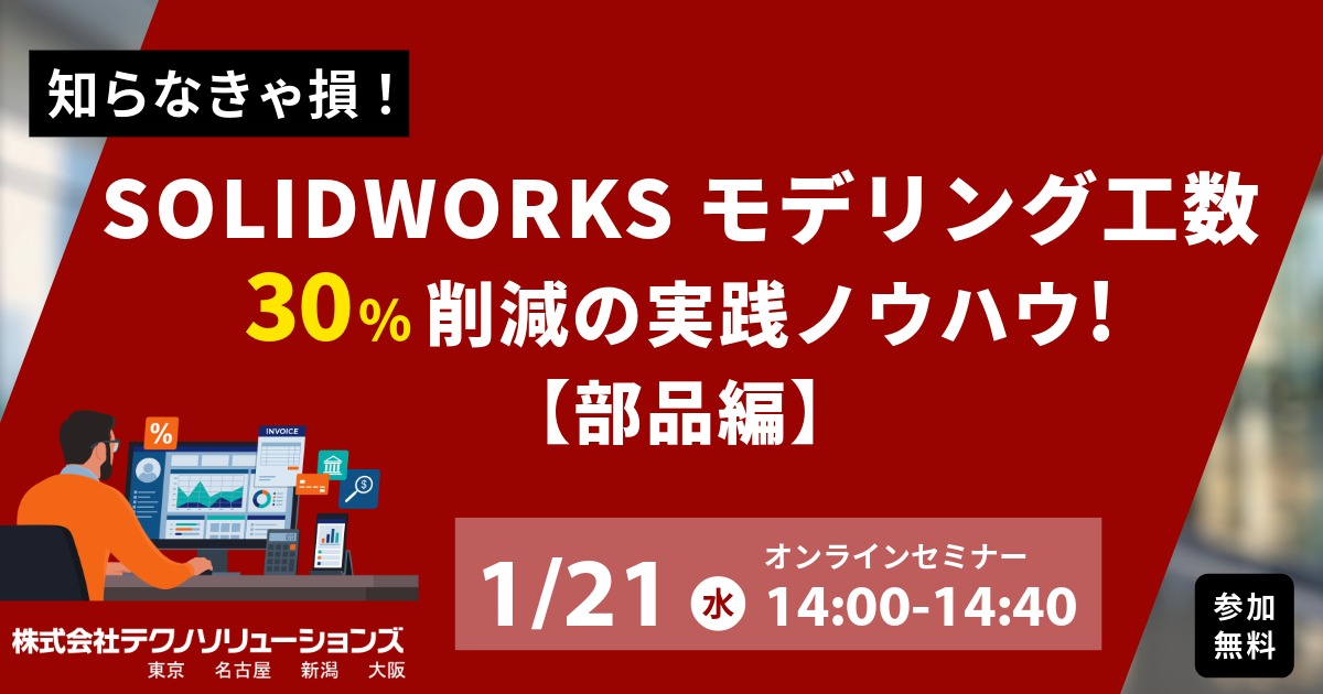 | 内容 | 【セミナー内容】 ・ごあいさつ(会社紹介) ・知らなきゃ損! SOLIDWORKS 工数30%削減の実践ノウハウ!部品編 ・SOLIDWORKSのライセンス形態をご存じですか? +クラウドで広がるSOLIDWORKS活用 |